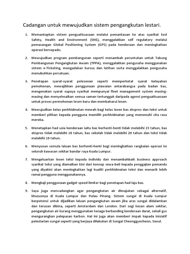 Related : Cadangan Penambahbaikan Sistem Pengangkutan / Berikut adalah cadangan penambahbaikan sistem pengangkutan awam yang dapat dijadikan panduan dan rujukan kepada pelajar semua..