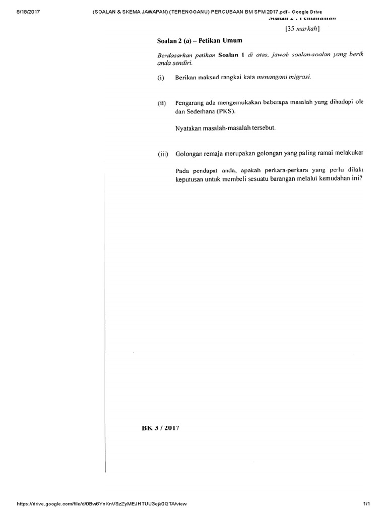 100%(3)100% found this document useful (3 votes). Soalan sebenar/ulangan bahasa melayu (bm) spm. Good luck in your spm! Learning with shirley 6 months ago. Matematik spm 2017 kertas 2 soalan 11 spm matematik. Kupasan mutu jawapan kertas bm 2 2017. Bahamas convention 2017 sacred service of ordination consecration clip iii. Karangan ramalan (1) spm 2017. Savesave soalan ramalan(bi) spm 2017 for later. Spm matematik tambahan (addmath) 2017 kertas 1. Bank soalan spm | facebook ramalan bm spm 2019. Pakej c soalan ramalan spm 2017 aliran sastera 1 (bm/bi/sej/math/sains/perdagangan). Soalan spot spm senarai karangan spm dan soalan ramalan spm 2021 yang bocor untuk bahasa melayu bm bahasa inggeris english sains sejarah geografi dan matematik.
